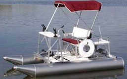 2014 Aqua Cycle paddleboat - 2-person aluminum boat. Fully adjustable seat for comfortable pedaling, front and rear rudders for easy steering, maintenance free construction: Stainless steel nuts & bolts, poly urethane decking, aluminum tube and frame, Unique dual paddle system for unmatched "performance", rear swim platform, rear deck for tackle box or cooler etc.